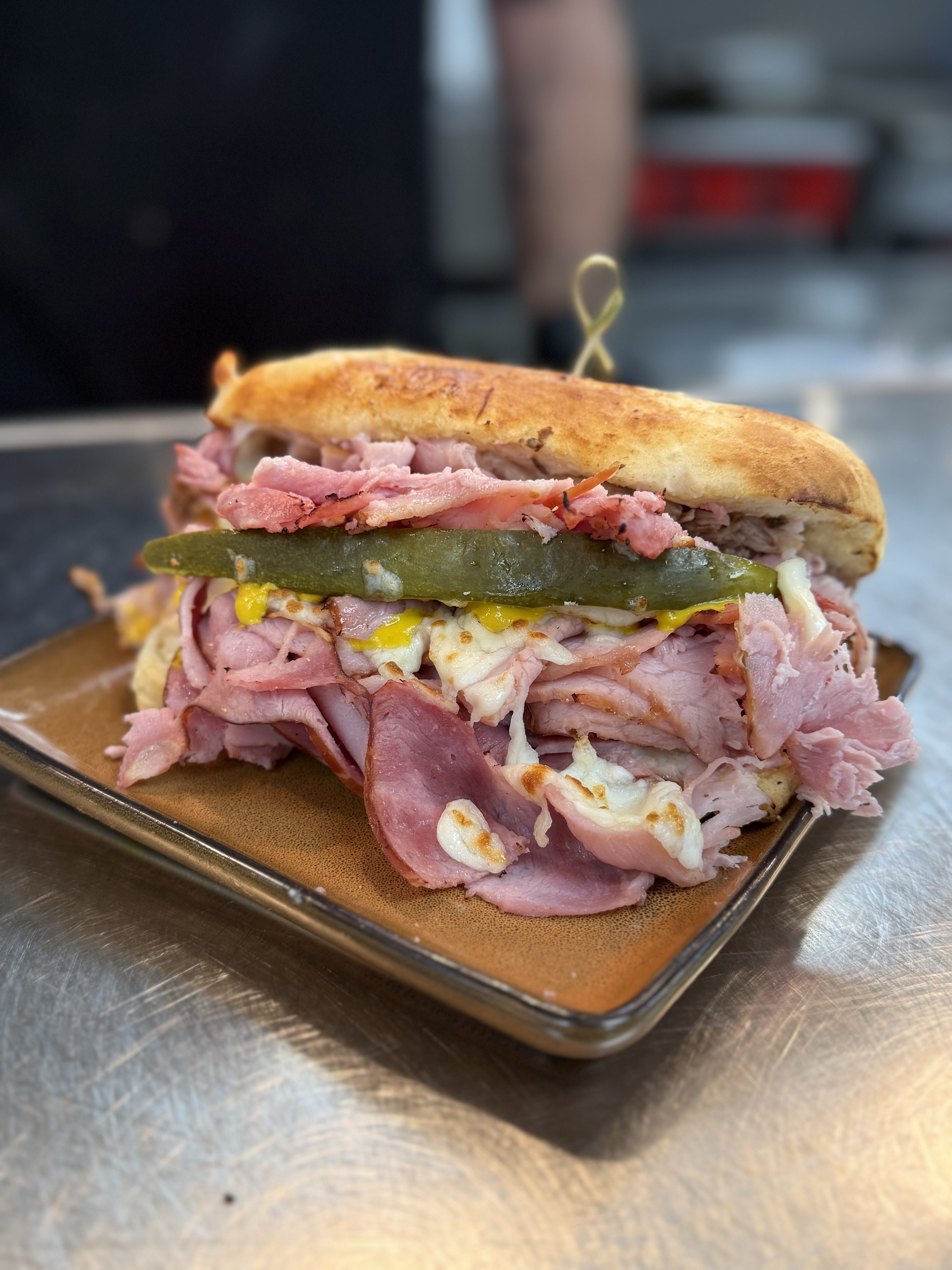 Ham, shredded pork, mustard, pickle, mayo