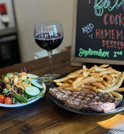 14oz fresh, grilled steak served with two sides of your choice