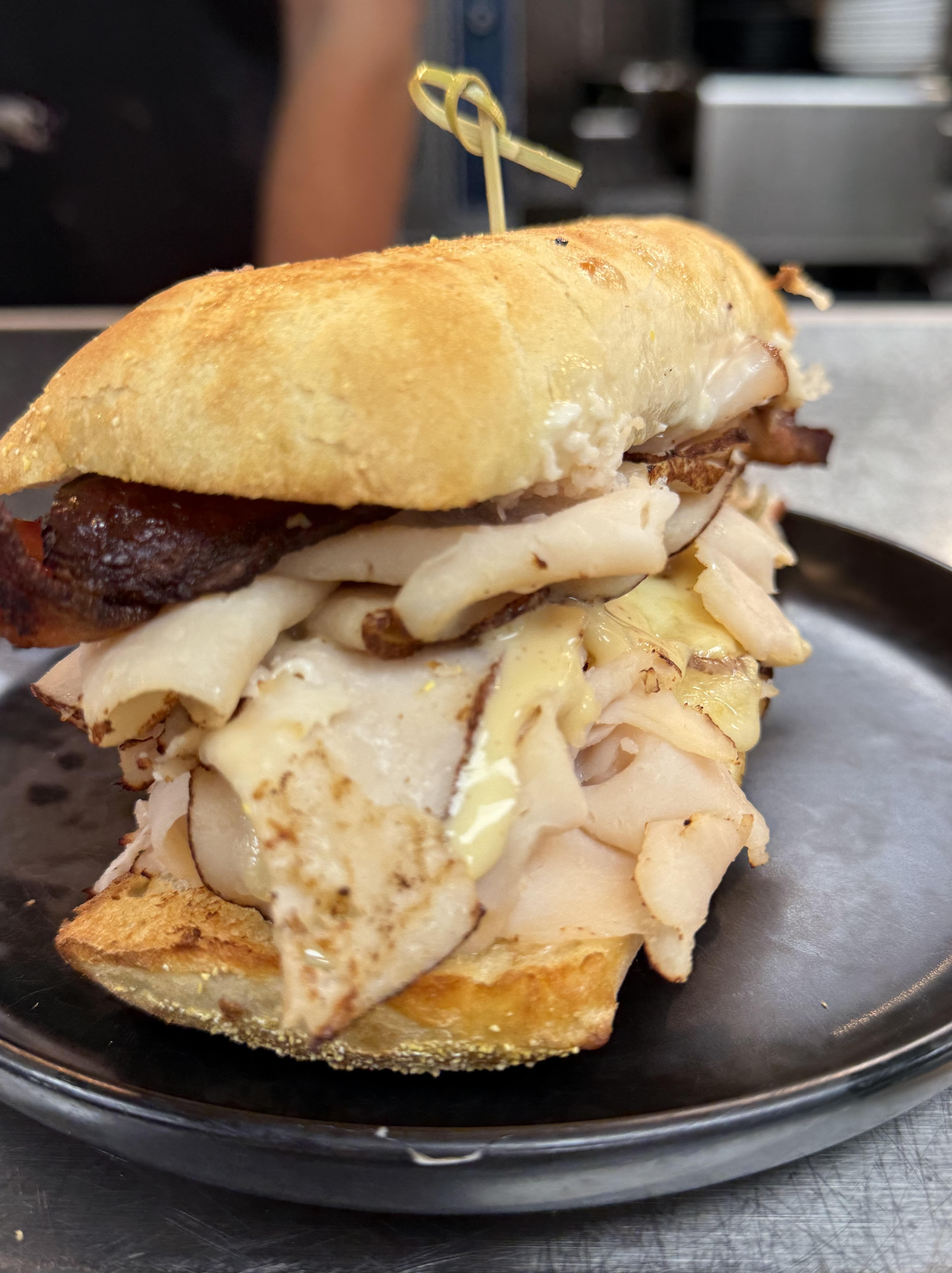 Turkey, Bacon, Lettuce, Tomato, Mayo, Pickle, Toasted Bread